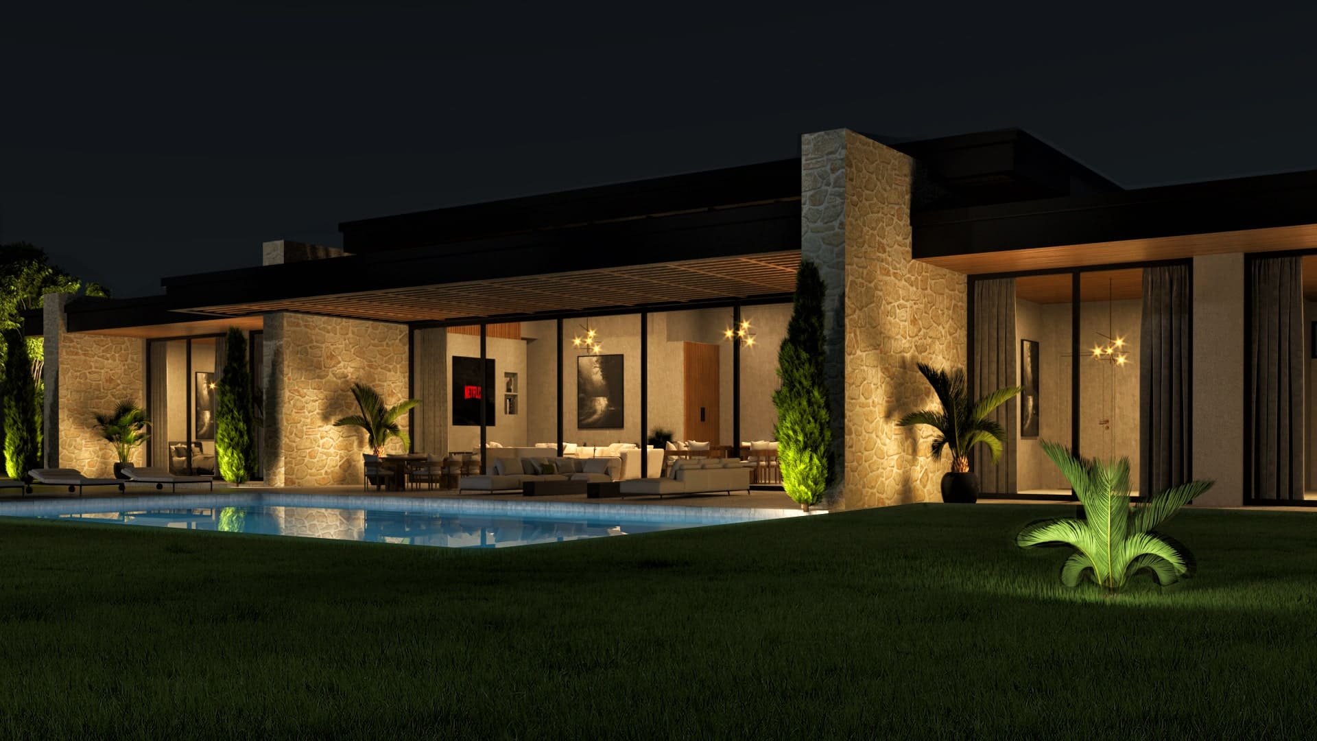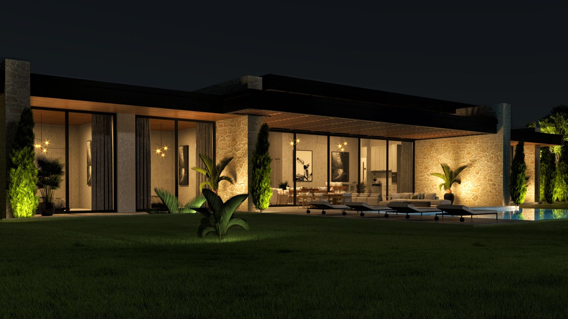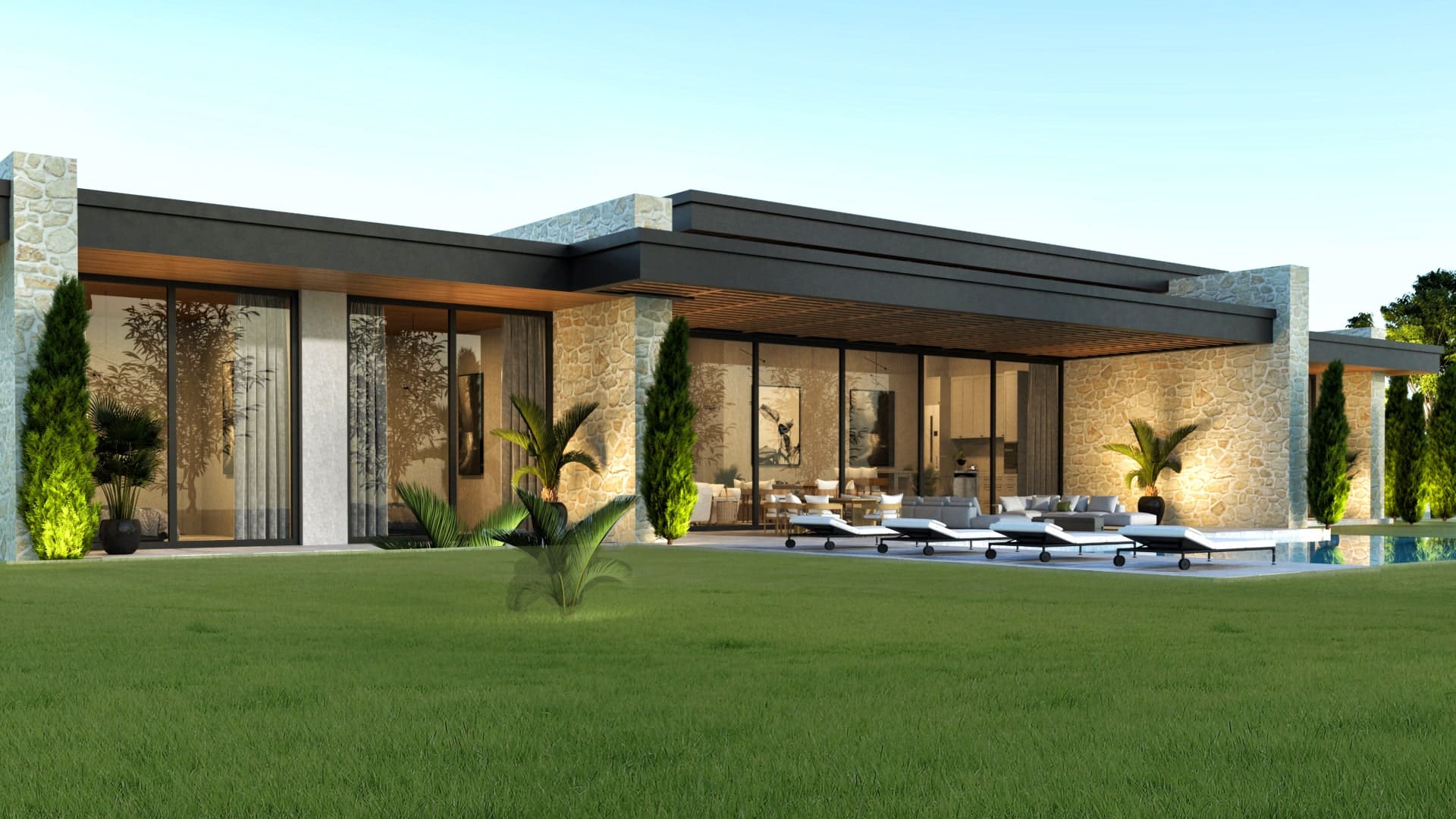 Beril Natura, doğayla kusursuz bir uyum içinde tasarlandı. Geniş cam yüzeyleri, doğal taş dokuları ve yatay mimarisiyle çevresiyle bütünleşen zarif bir yaşam alanı sunar. Sessizlik, konfor ve estetik bu modern villada bir araya geliyor. Sade ama etkileyici çizgileriyle huzurlu bir yaşamın kapılarını aralıyor.